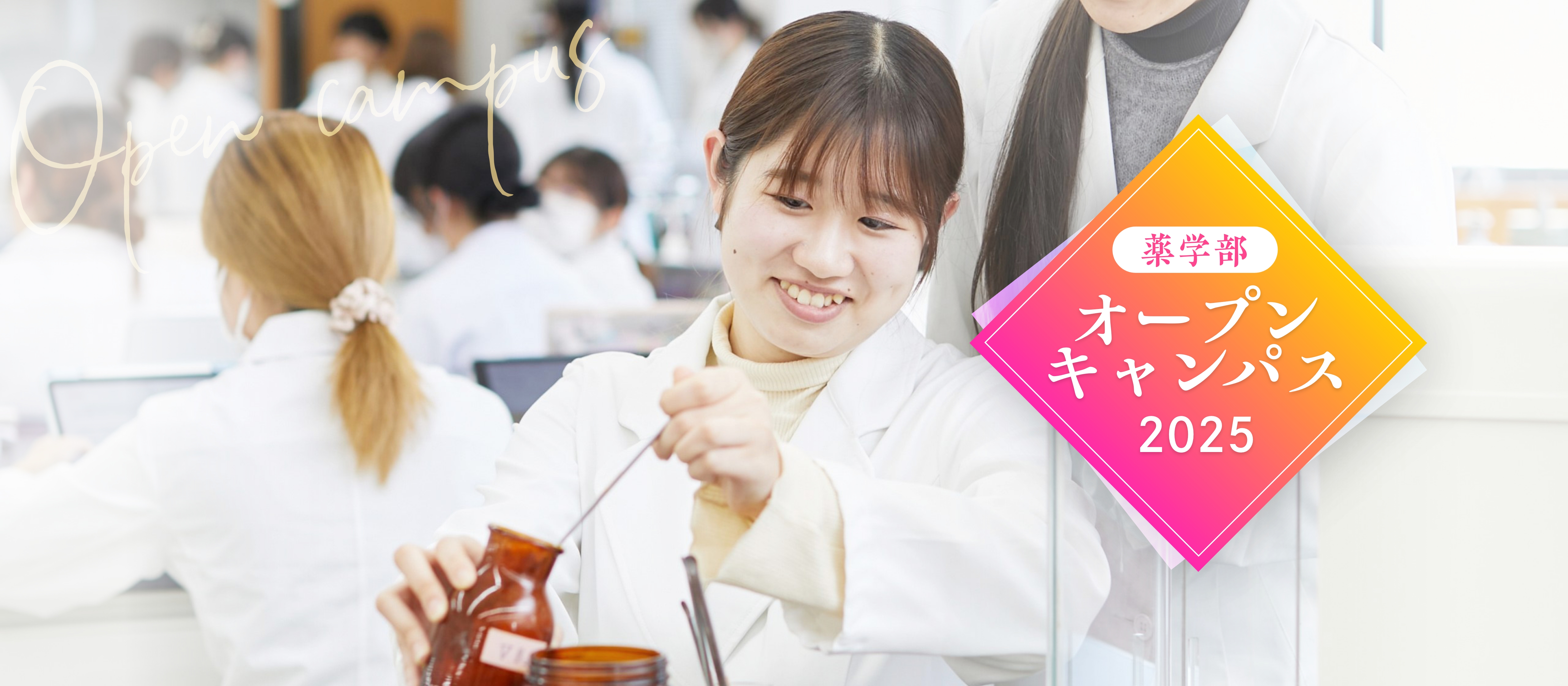 オープンキャンパスでは、より身近に「ムコジョ薬学」の魅力を体感できます。